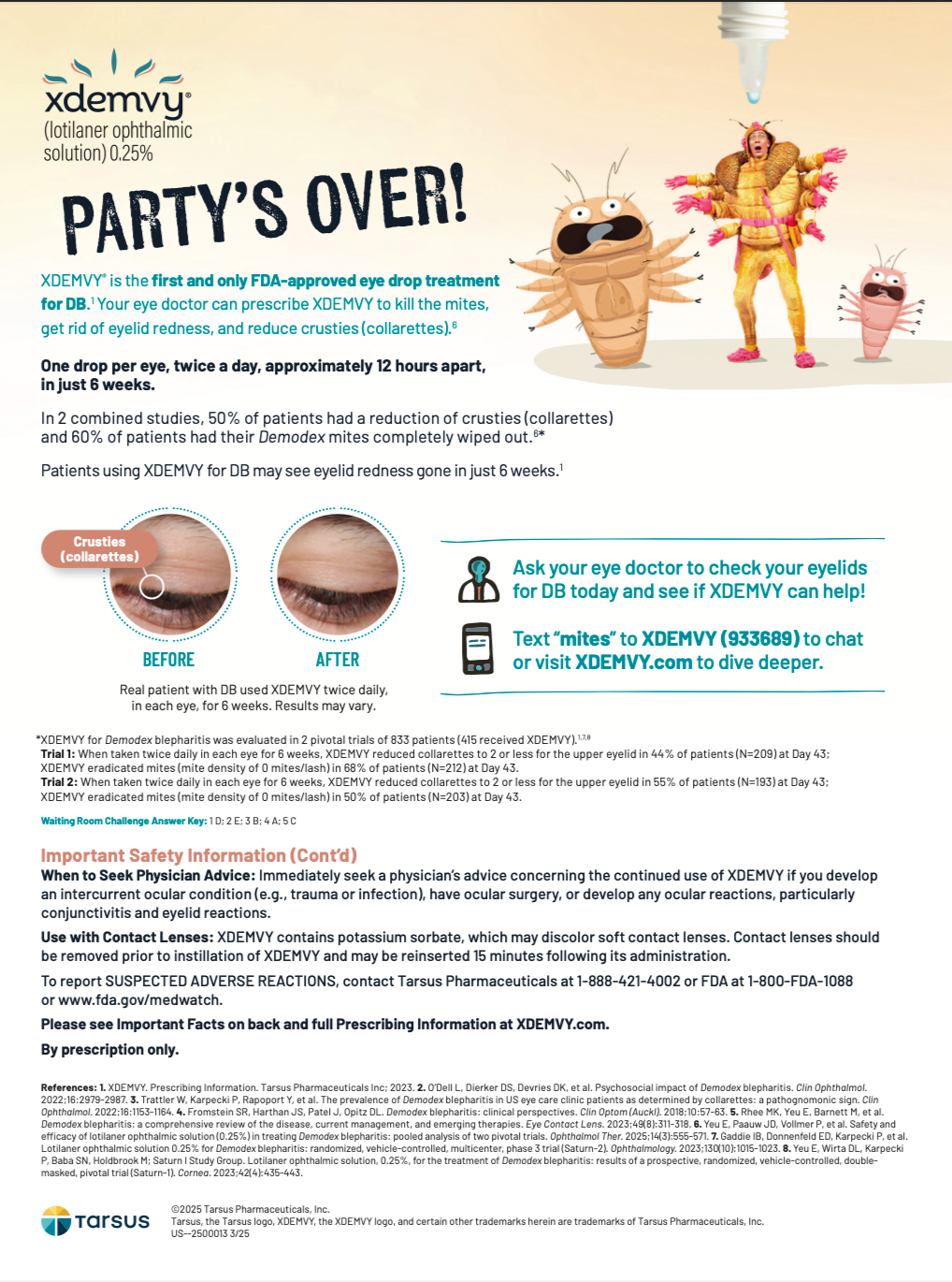 While at The Heller Agency, I had the opportunity to work on an exciting project for our client, Tarsus Pharmaceuticals. They challenged us to create a high-impact cover wrap for People magazine that would raise awareness about XDEMVY: the first and only FDA-approved treatment for Demodex blepharitis (DB), a common yet often overlooked eyelid condition. The final piece combined compelling creative with clear, educational messaging to drive recognition of both the disease and its groundbreaking solution.